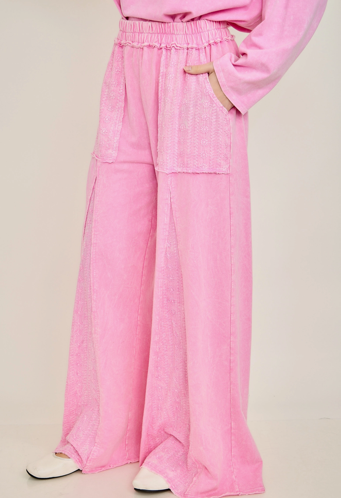 Mineralwash Eyelet Flare Pants